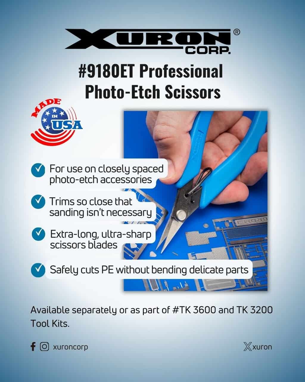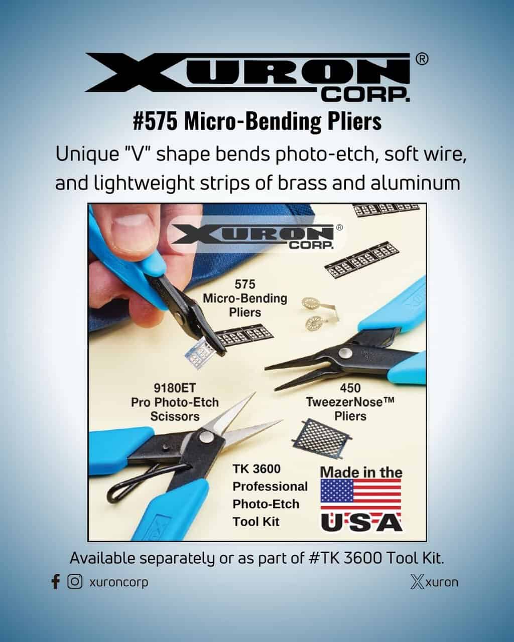 Scott encountered Xuron® tools on a visit to a Chicago hobby show in the 1990s. Since then, they’ve played a key role in his toolkit. Tools like sprue cutters, photo-etch scissors, and bending pliers help him achieve clean cuts and precise bends, ensuring even the tiniest details are up to his high standards. This stress-free handling of delicate photo-etch parts has become a game changer in producing professional-level results.