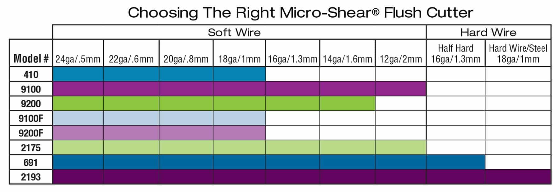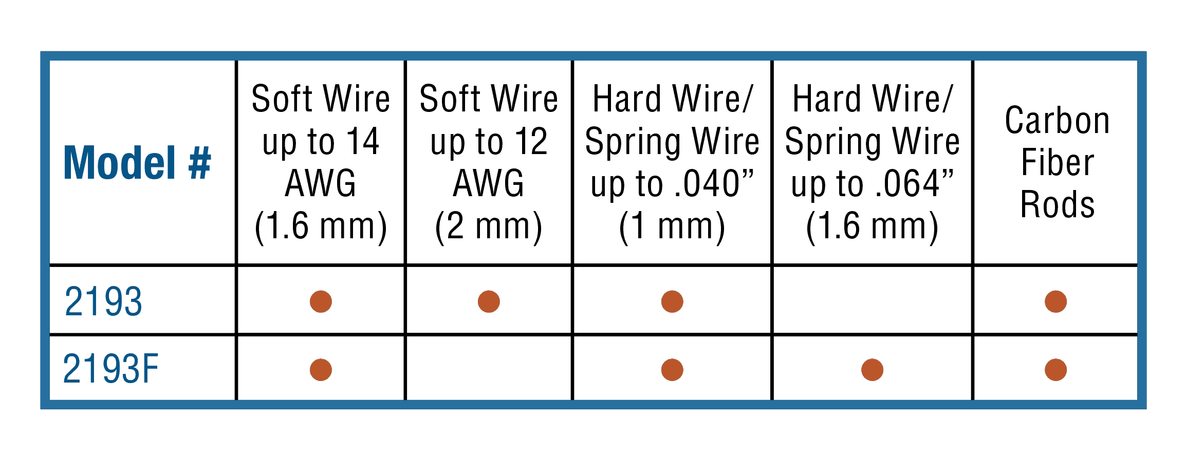 - ♦ For thicker wires up to .064” (1.45 mm) or when concerned about flyaway pieces, use the 2193F. It can be used to cut piano, silver, gold, and copper wires and is suitable for cutting twisted throttle cables.